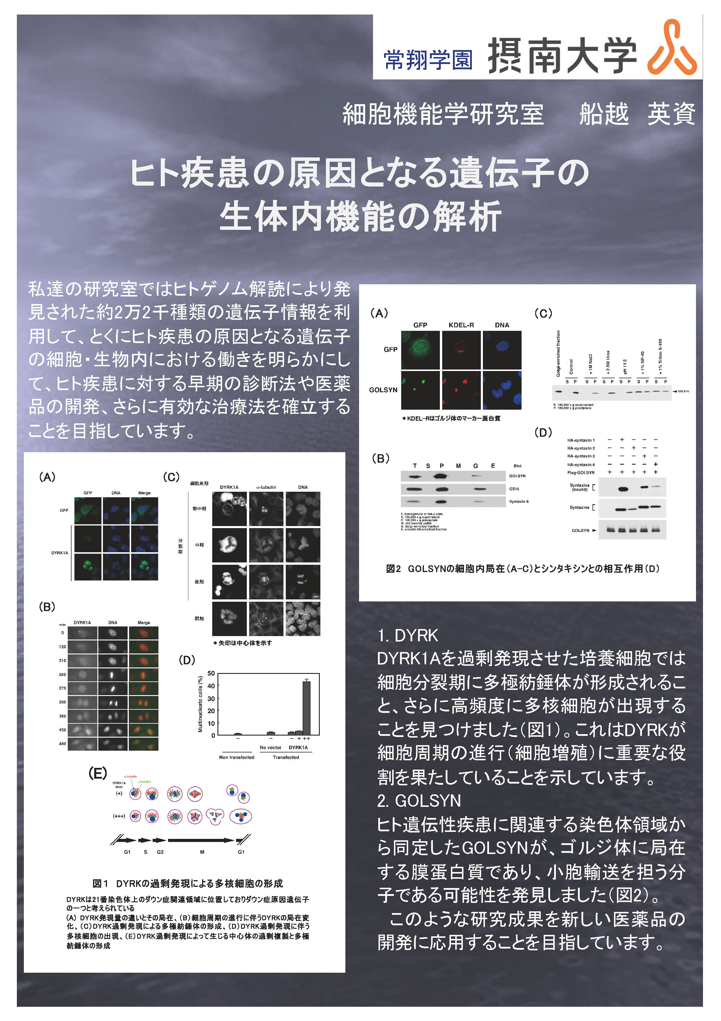 - 船越英資、濱野文子、清水厚志、浅川修一、清水信義、伊藤文昭: Identification of the critical region for intracellular localization of GOLSYN. 20th IUBMB International Congress of Biochemistry and Molecular Biology and 11th FAOBMB Congress. 平成18年6月(京都)