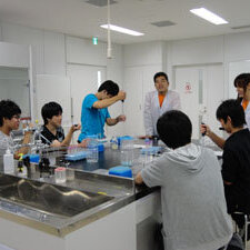 と題し、1号館8Fの生命科学科実習室において、リゾチームの溶菌実験、リゾチーム結晶の観察を行いました。さらに、生命科学科に設置された機器のひとつである質量分析器の紹介を行いました。