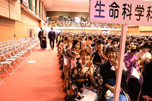 生命科学科では、第5期生として78名(秋季卒業を含む)が卒業するとともに、大学院理工学研究科生命科学専攻前期博士課程を修了した2名が、社会人としての新たな一歩を踏み出します。