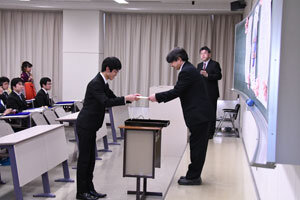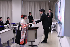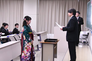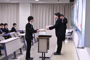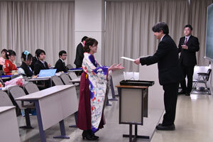 2018年3月23日(金)午前11時より、寝屋川キャンパス総合体育館において、2017年度 摂南大学 学位授与式がとり行われました。その後、会場を移し、本学科卒業生ひとりひとりに学位記が授与されるとともに、業優秀賞の授与ならびに卒業発表会における優秀賞が発表されました。