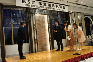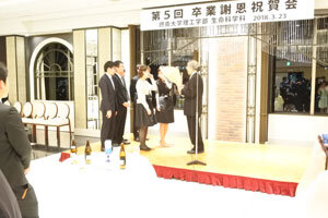 同日、午後6時より、ホテルモントレ ラ・スール大阪において、学部卒業生と大学院修了生を交えた第5回 卒業謝恩祝賀会が開催されました。